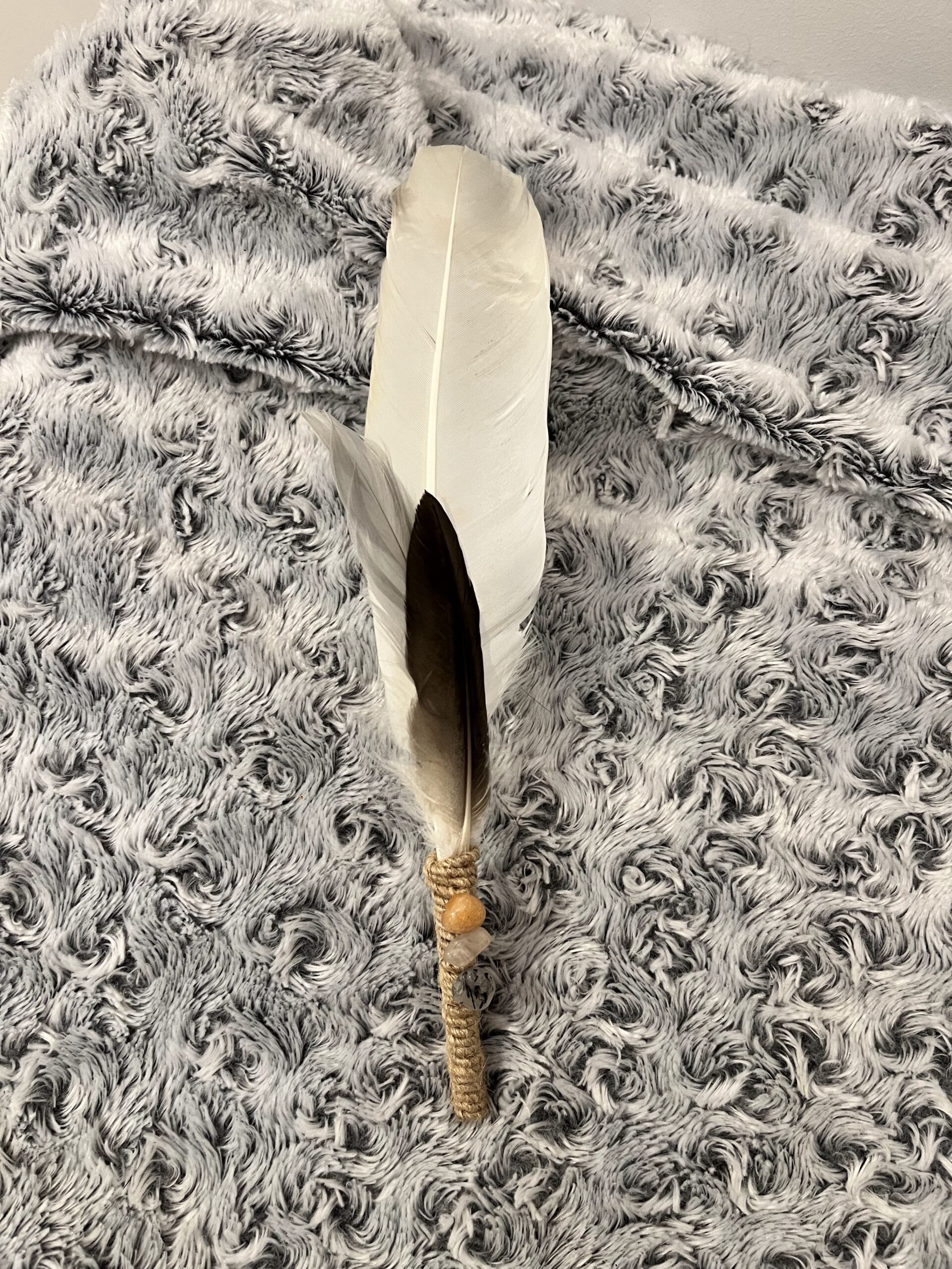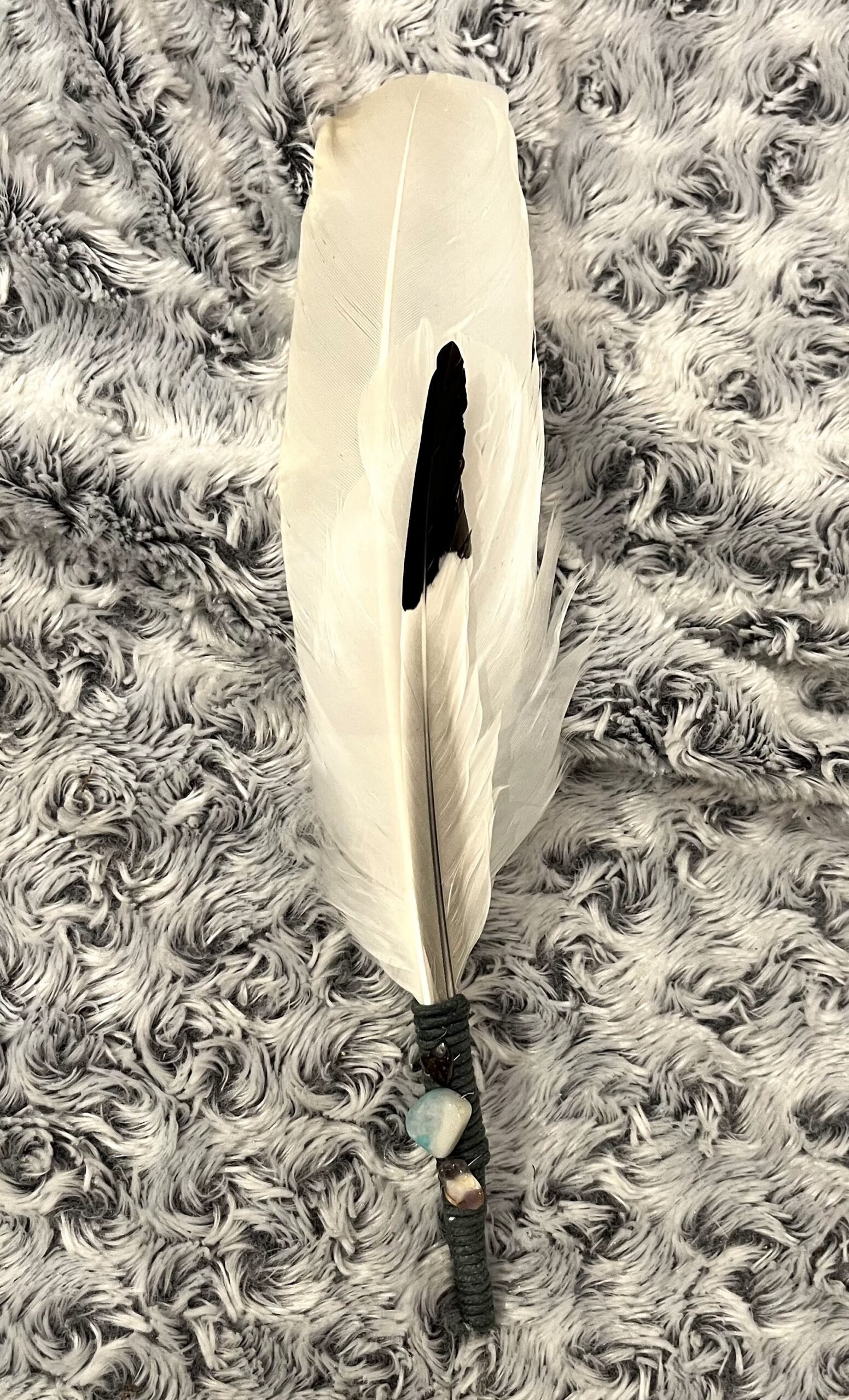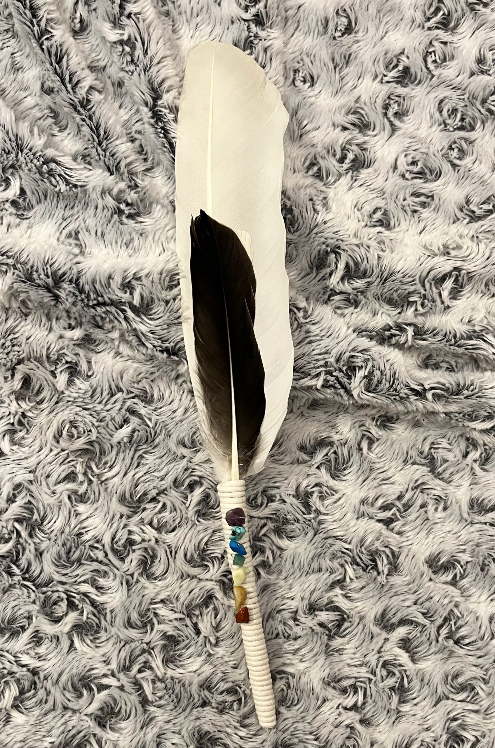 Authentic Icelandic feather wands. Hand picked feathers and put together by Arál with energy stones based on the colours of the chakras. Feather wands are typically used with sage, paulo santo wood or insense to cleanse energies.