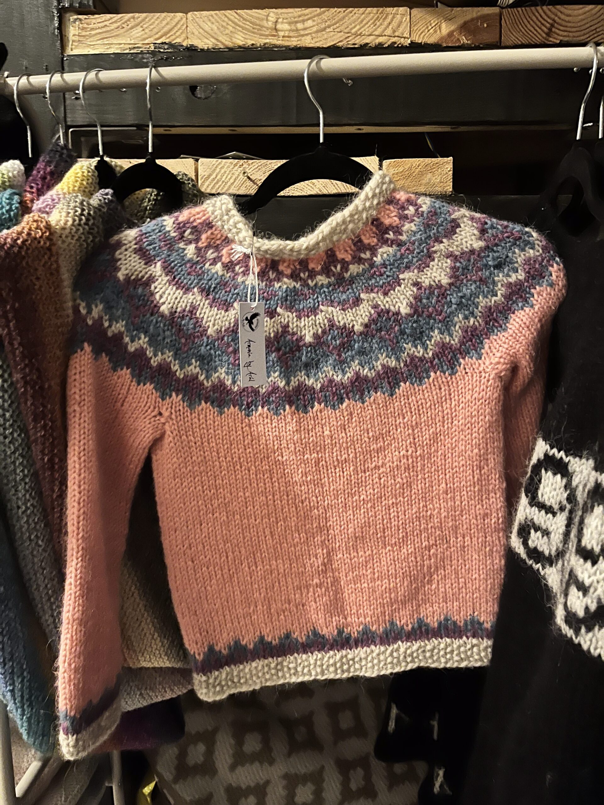 This traditional Icelandic whool weater or lopapeysa is hand‑knitted from 100% Icelandic wool, renowned for its warmth, durability, and natural insulation. Made using time‑honored knitting techniques, each sweater reflects Icelandic craftsmanship and heritage.