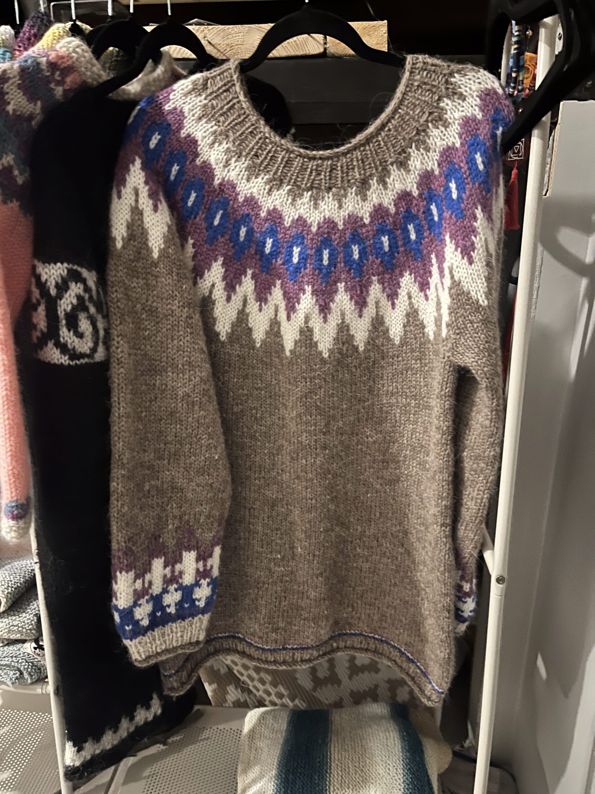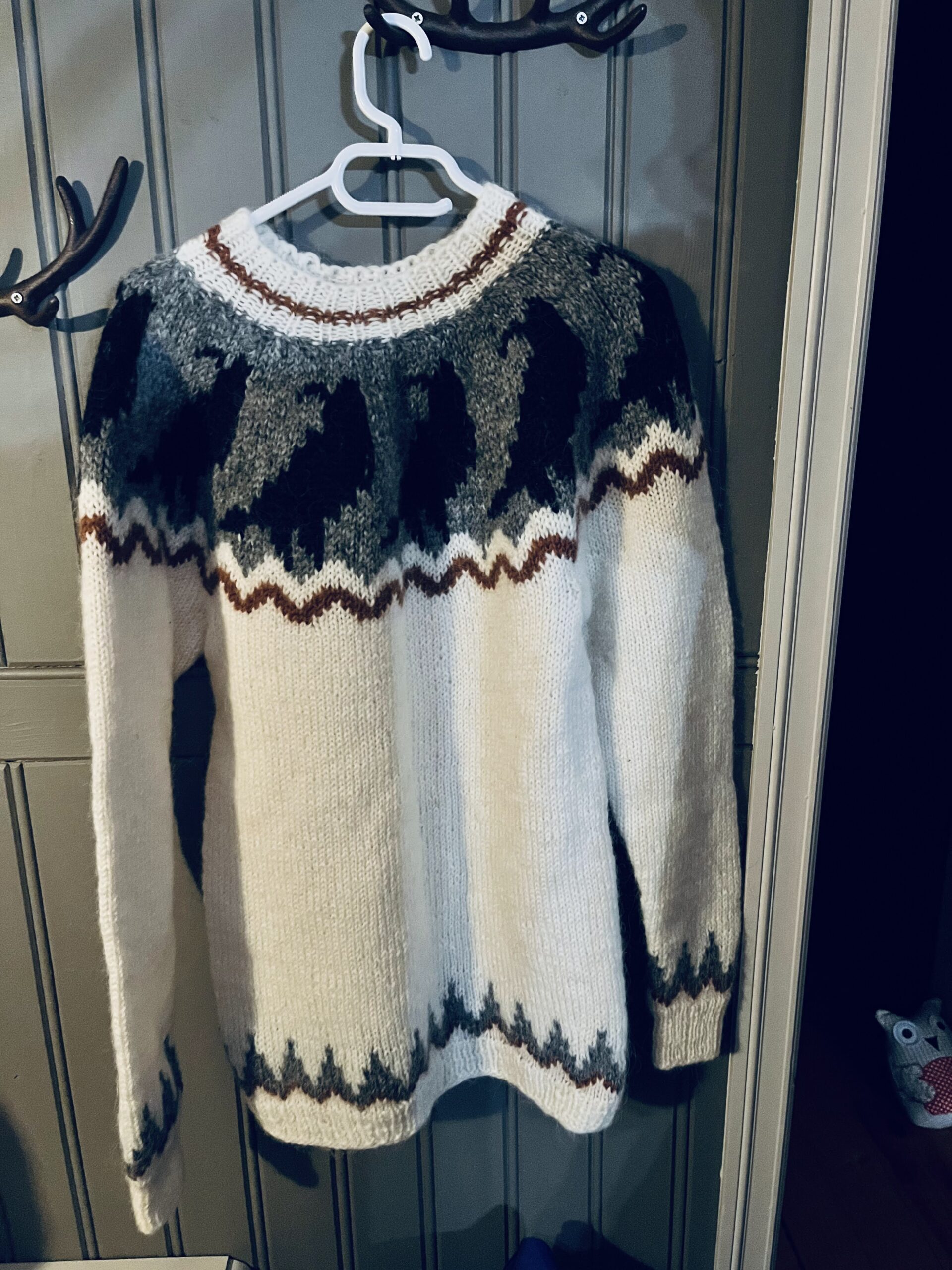 Icelandic wool is naturally breathable and water‑resistant, helping regulate body temperature in changing weather conditions. The distinctive design and textured wool create a timeless garment that is both practical and visually striking.